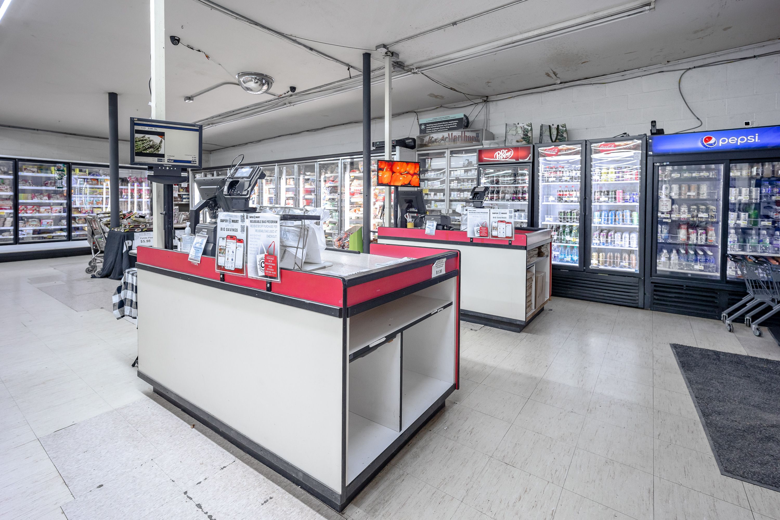 | Formerly operating as the Super C Mart Grocery Store, this 5,572 SF building sits on approximately 0.975 acres and was originally constructed in 1960. The property is being sold as-is, with no coolers or shelving included at the list price; however, buyers may negotiate separately for those items to remain. This property presents a solid opportunity for an owner-user or investor seeking a freestanding commercial building with a functional footprint and redevelopment potential. | ||