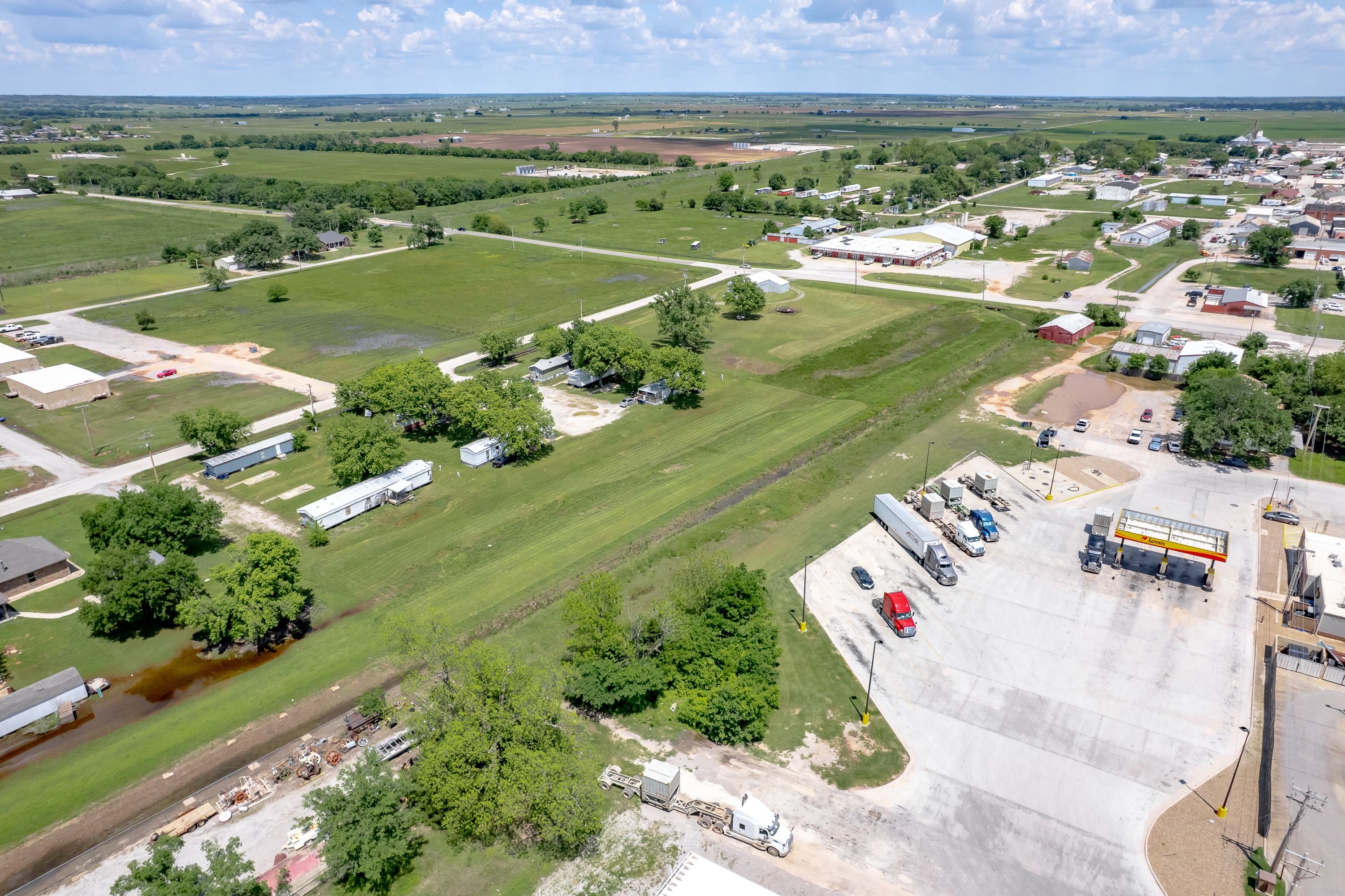 | Located just behind Love’s Travel Stop, Sonic, and Family Dollar/Dollar Tree in Lindsay, Oklahoma, this ±/-2.84-acre industrial site offers strong visibility and convenient access in a high-traffic area. The property includes a total of eight industrial lots across two parcels—one measuring approximately 1.34 acres and the other 1.5 acres—and features an existing 1,800 SF building constructed in 1965. Zoned for industrial use and positioned near established national retailers, this site is well-suited for service-based businesses, light industrial development, or investor use. | ||