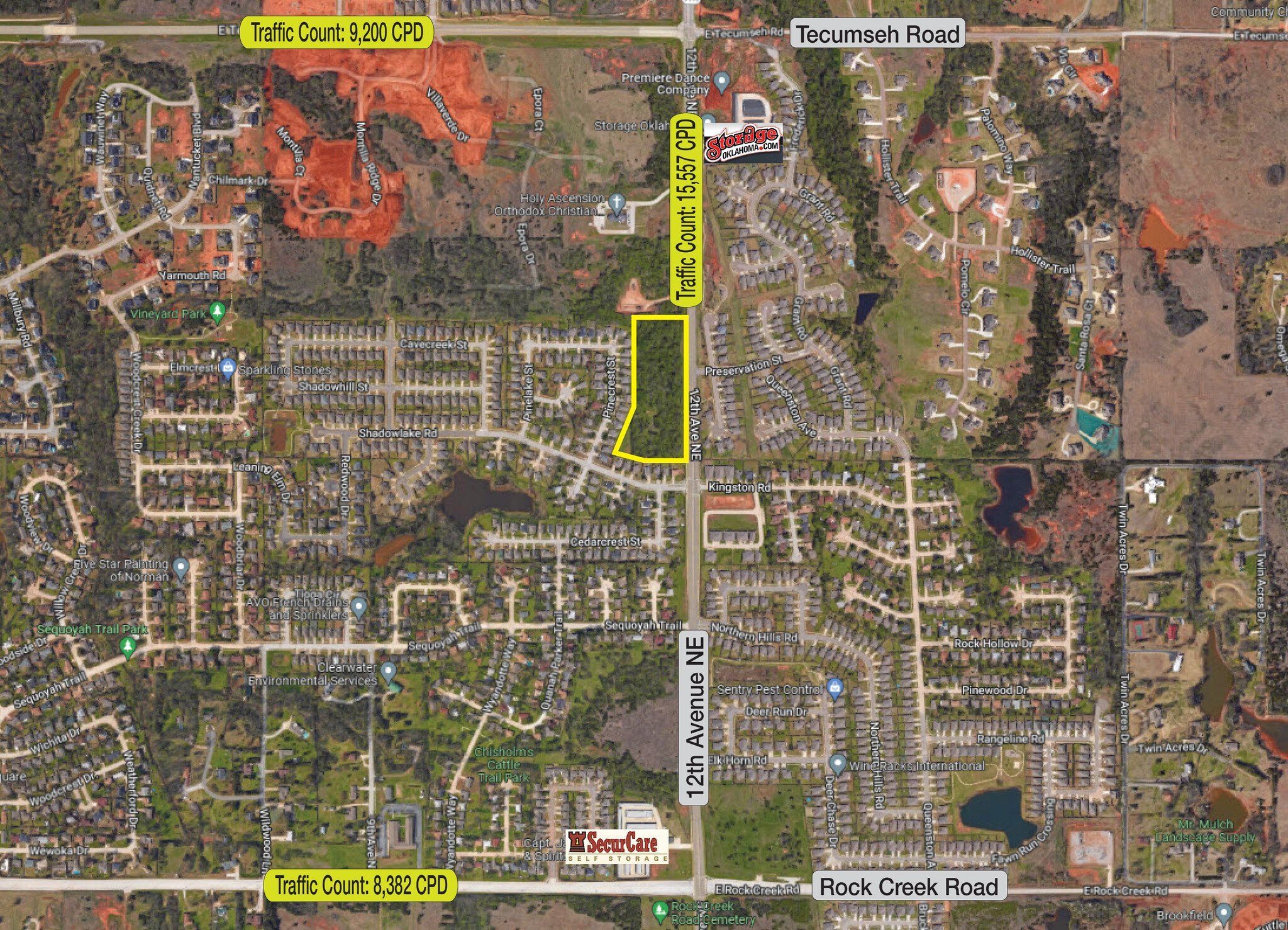 | For Sale: Land In Norman! Prime Commercial Land: 6.164 acres MOL with CO zoning (Suburban Office) at 3000 12th Ave NE, Norman, OK 73071. With 837' of frontage on 12th Ave NE, this easily accessible property offers natural water detention, along with adjacent water and sewer connections. Conveniently located just 4 miles from the University of Oklahoma and offering effortless access to I-35, this is an exceptional opportunity for various commercial ventures. Don't miss out on this prime location to realize your business's full potential. Act now and seize this rare gem! Listed at $399,000.00. Call today for more information. | ||