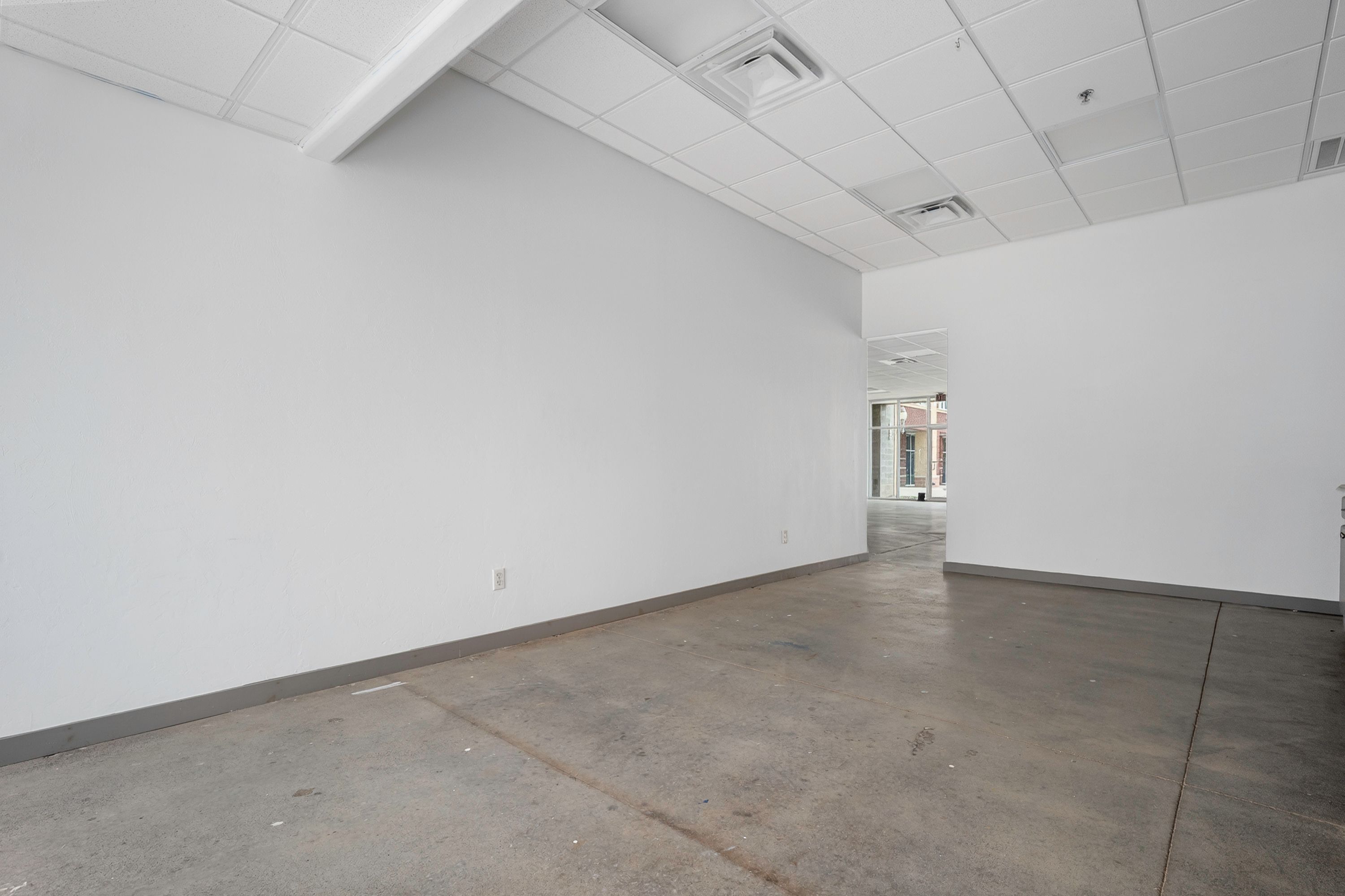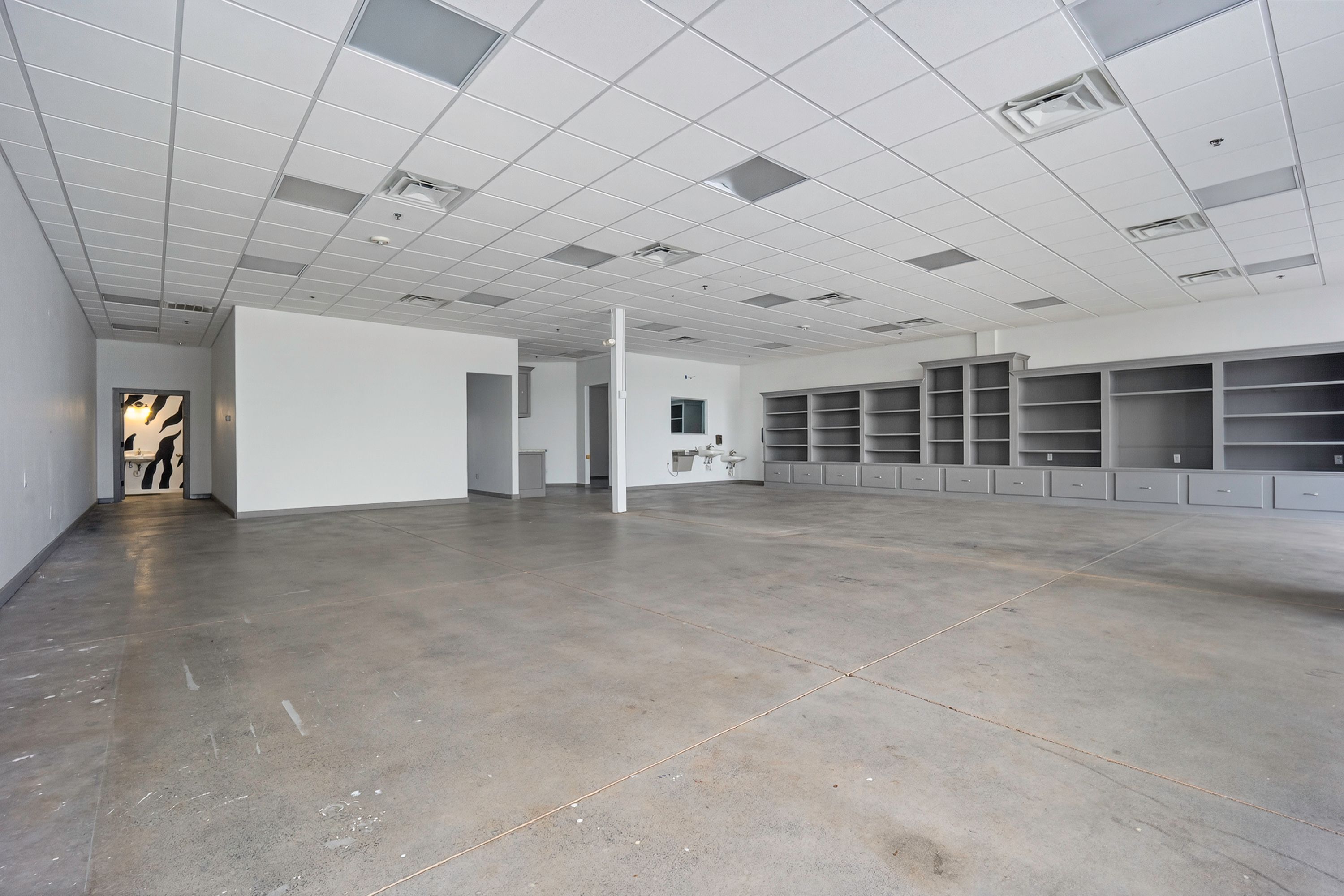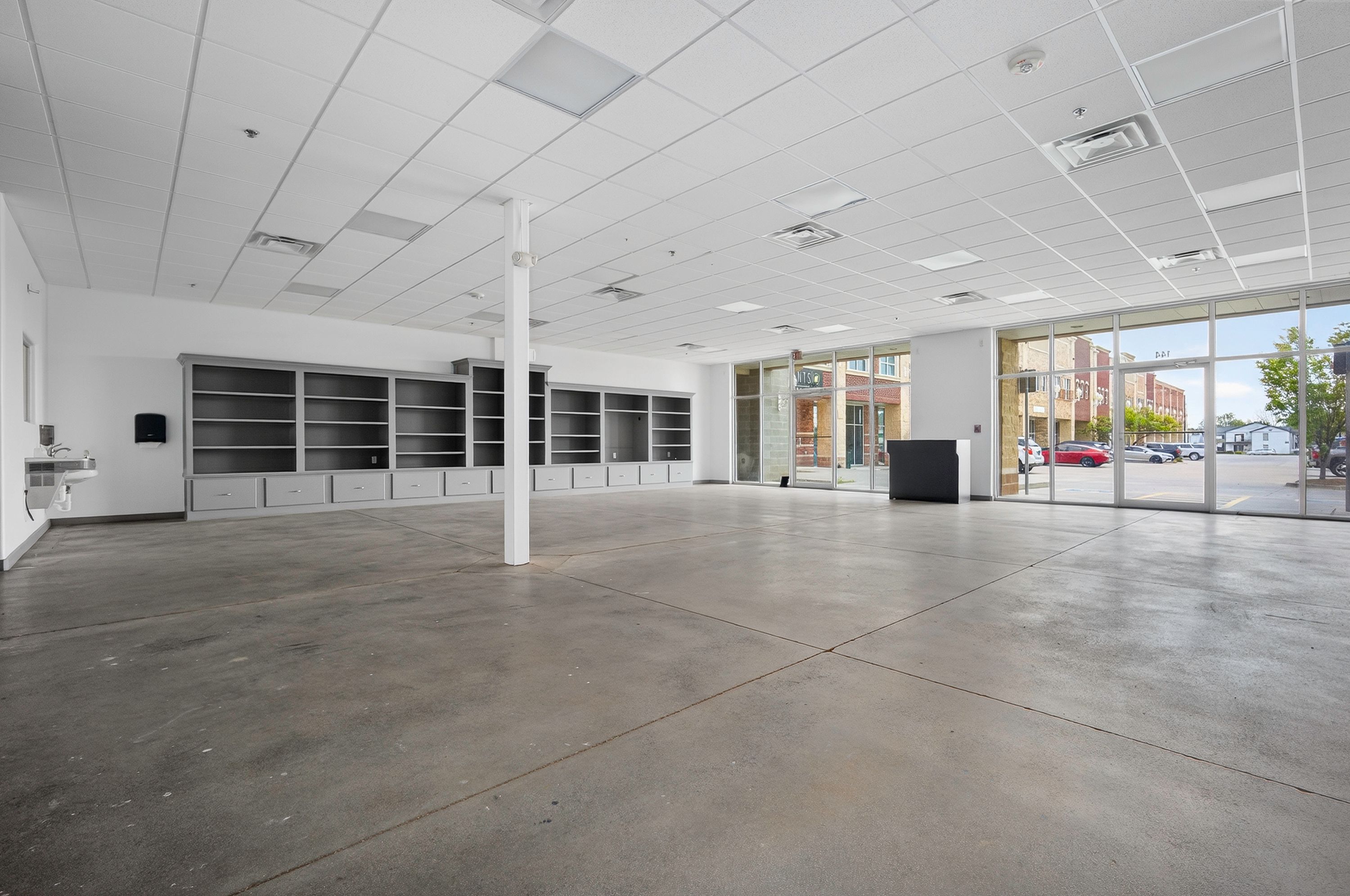 | Suite 142–144 at Madison Square offers 2,560 SF of versatile space in an inner corner location within the center. The layout features a large open area with a built-in shelving wall, ideal for retail display or workspace needs. Additional features include two breakrooms that can also function as private offices or workspaces, along with two restrooms, providing flexibility for a variety of users. This suite is well-suited for retail, office, or service-based businesses seeking a functional layout in a high-traffic NW Norman location. | ||