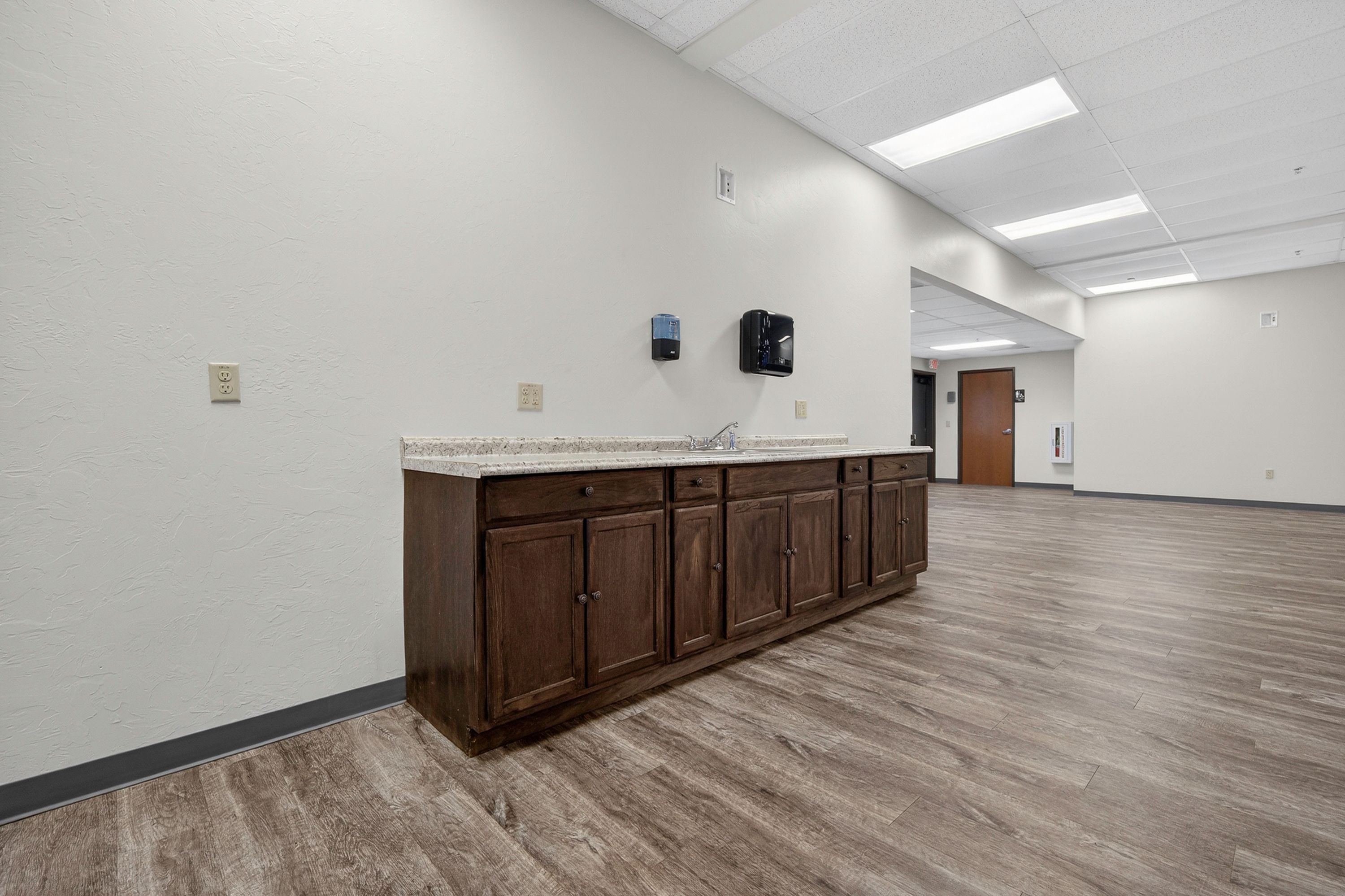 | Suite 146–156 at Madison Square offers 7,685 SF of expansive office space designed for larger users. The layout includes three large open areas previously configured with cubicles, six private offices, and a utility closet, providing flexibility for a variety of office setups. Additional features include five restrooms and two kitchenettes, offering convenience for employees and clients alike. This suite is ideal for companies seeking a sizable, functional space in a high-visibility NW Norman location with room to grow and customize. | ||