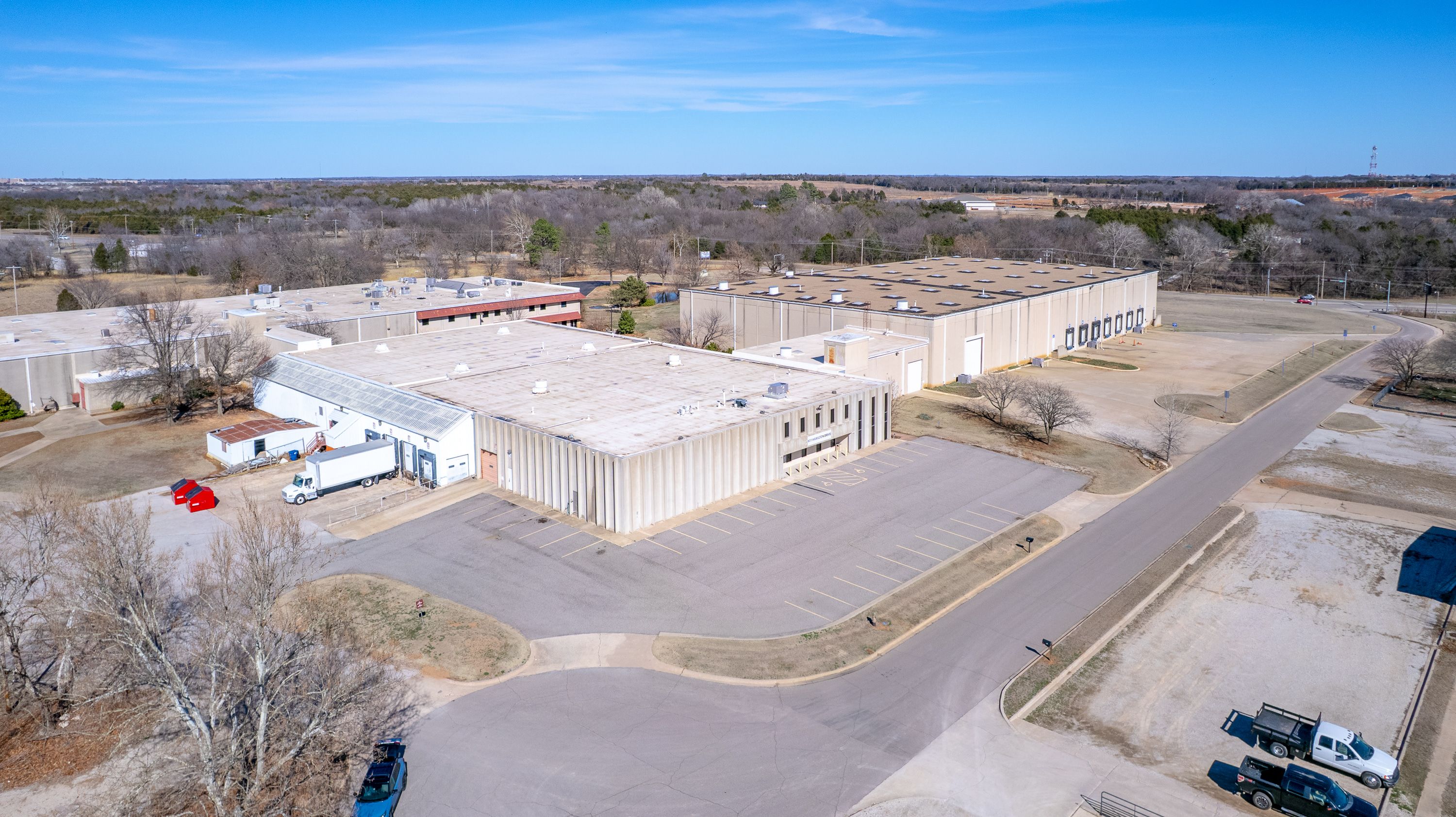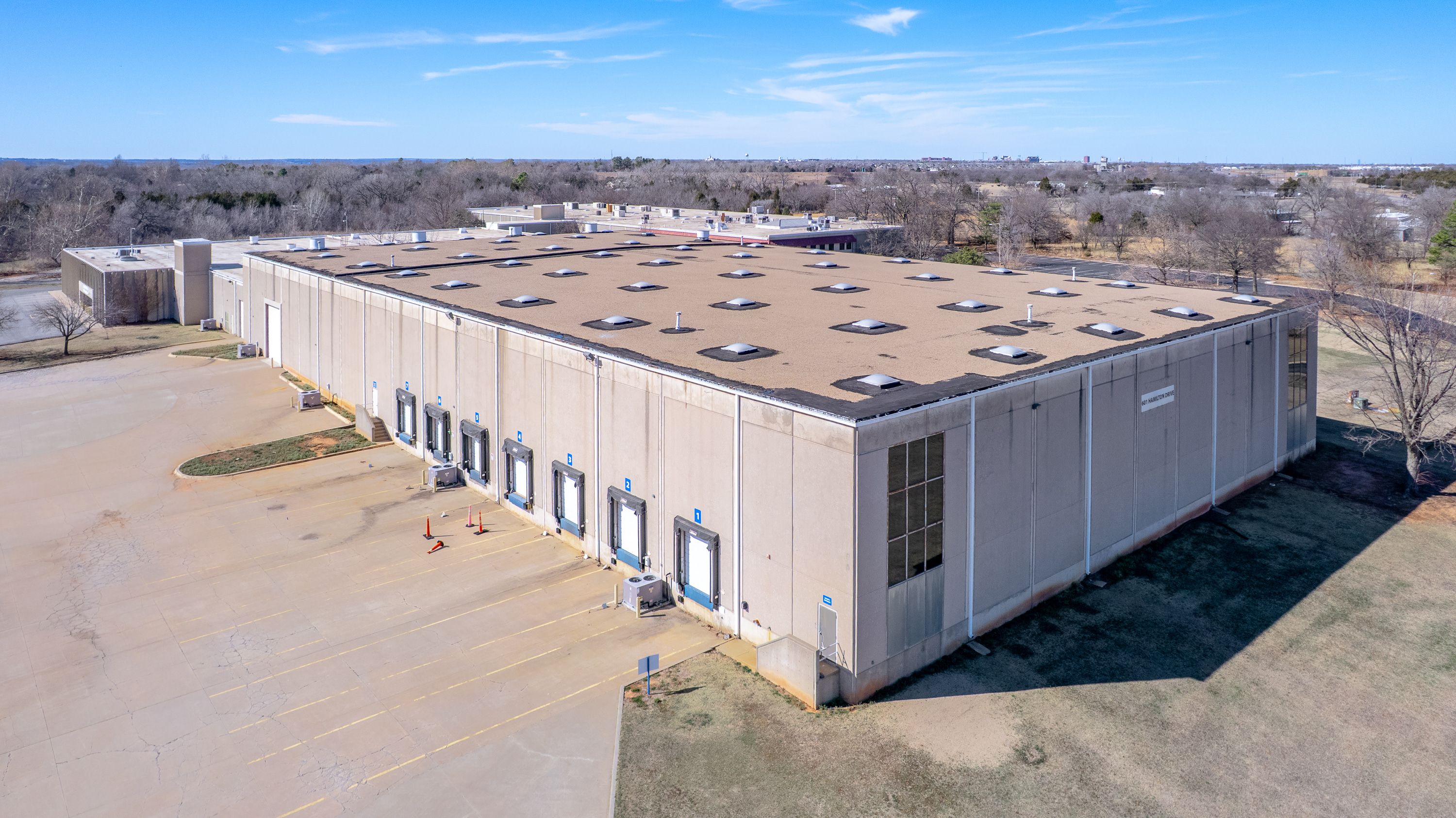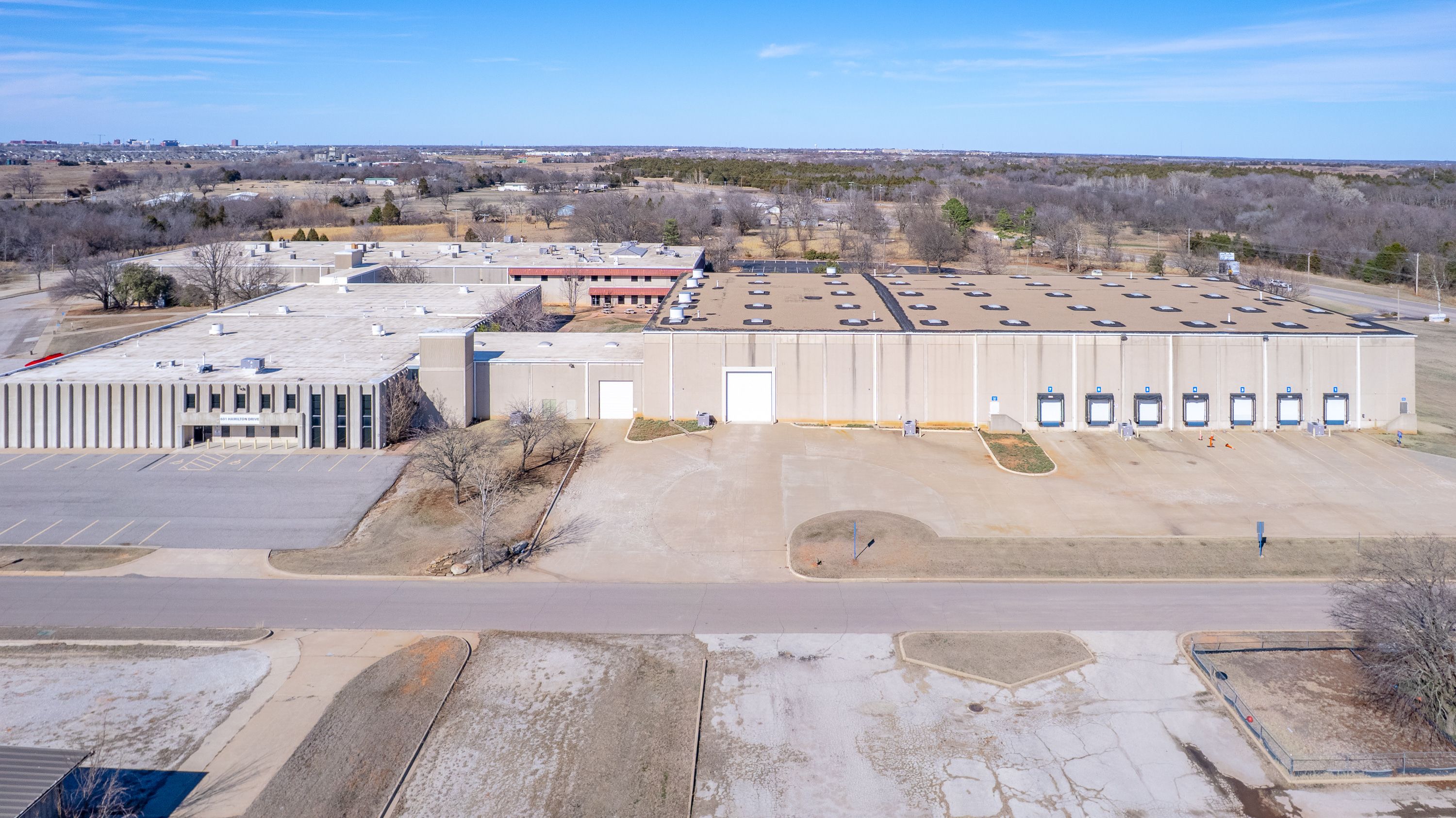 | Located at 601 N Hamilton Dr, Noble, OK 73068, this large-scale industrial facility offers exceptional access, visibility, and infrastructure along Highway 177. The property encompasses 156,623+ SF on 17+ acres and features concrete tilt-up construction (built 1982, renovated 1989), 30’ clear height, and 3-phase heavy power. With approximately 573’ of Hwy 177 frontage, two separate entrances, and a protected exit at a signalized intersection, the site is built for efficient operations and logistics. The warehouse is fully climate-controlled and equipped with multiple loading docks and overhead doors. The property is available for sale, with 50,000–56,623 SF also available for lease; approximately 50,000 SF is currently leased to two tenants, providing immediate income and upside for an owner-user or investor. For pricing, lease terms, or to schedule a tour: | ||