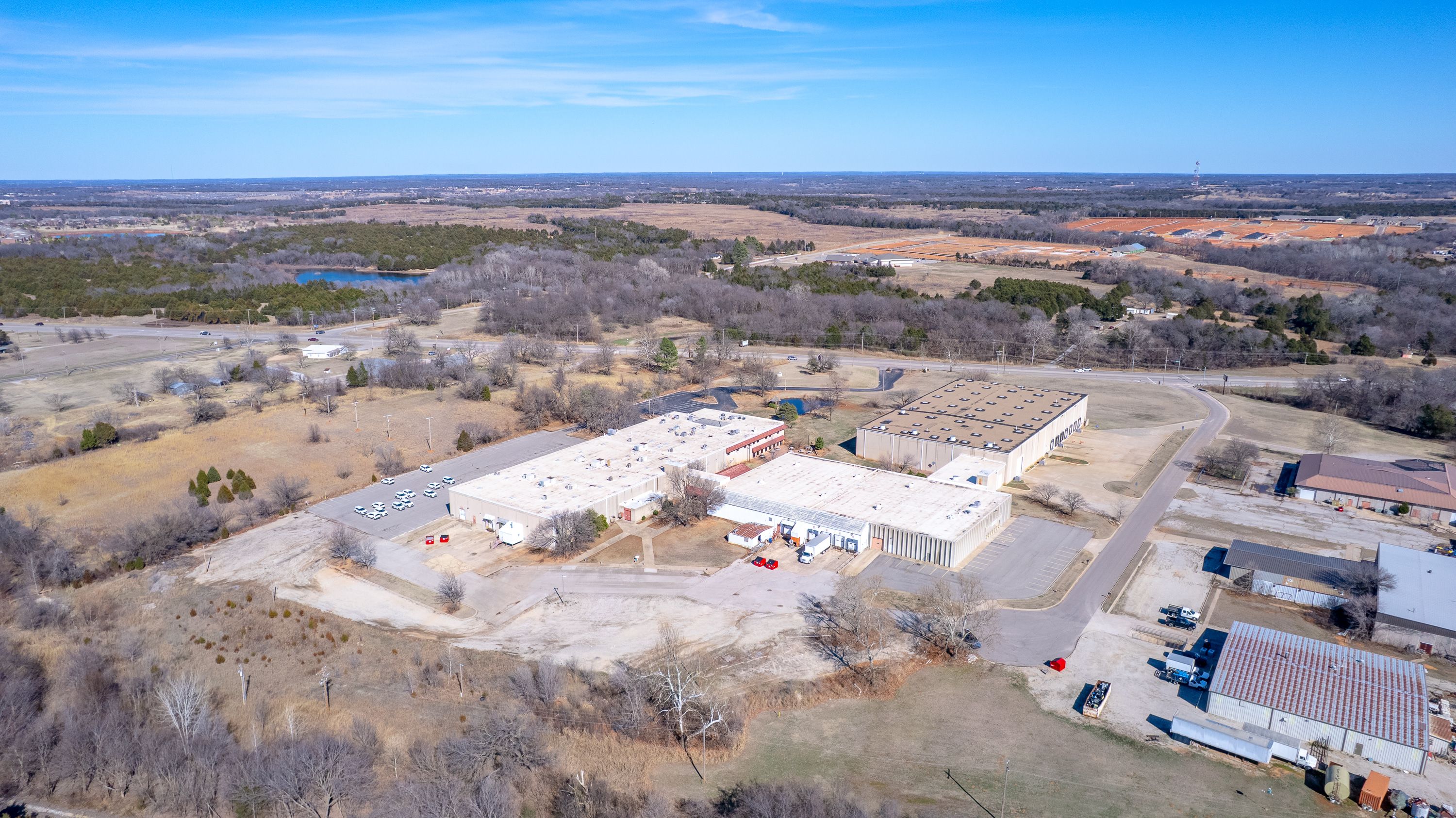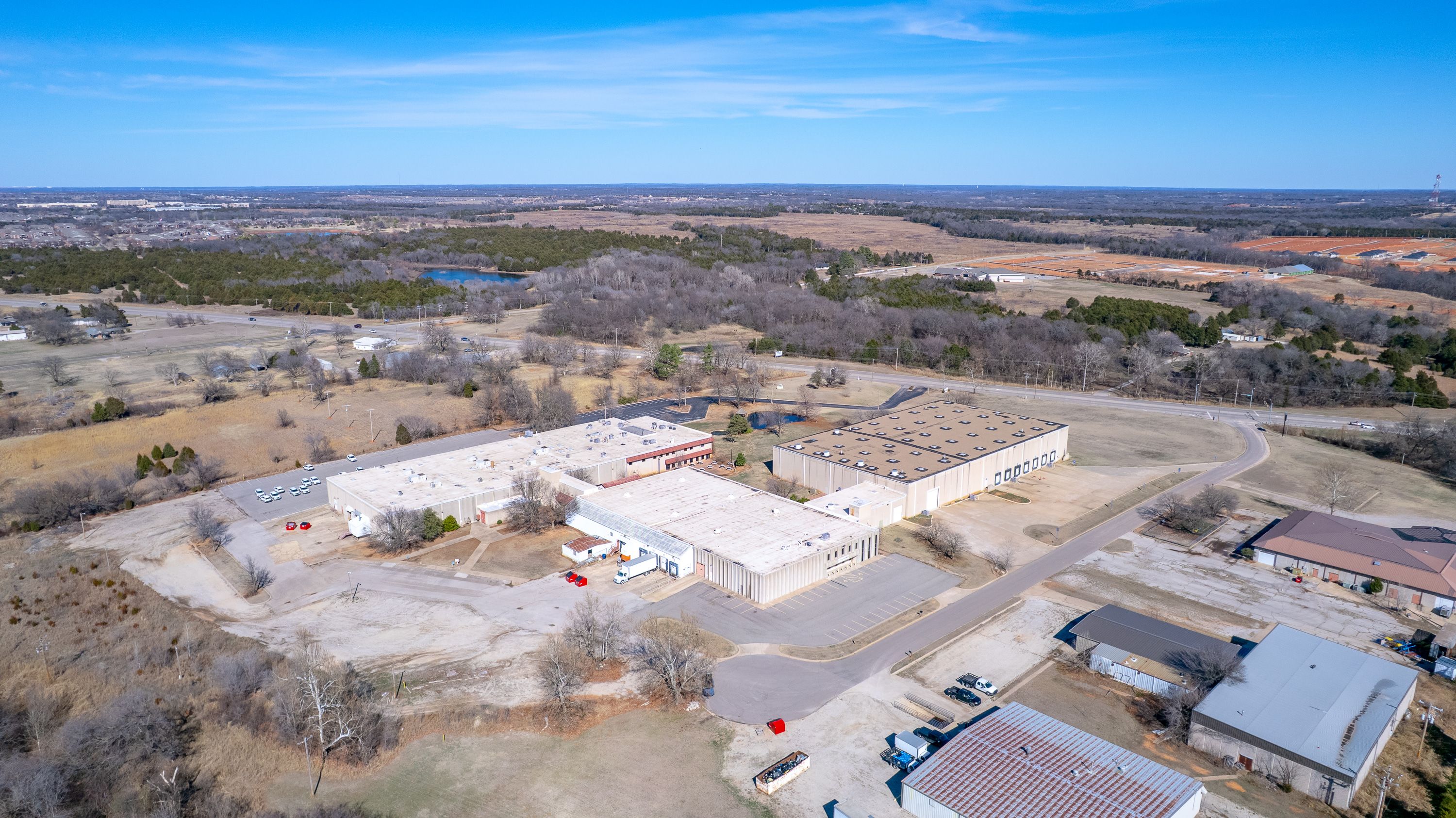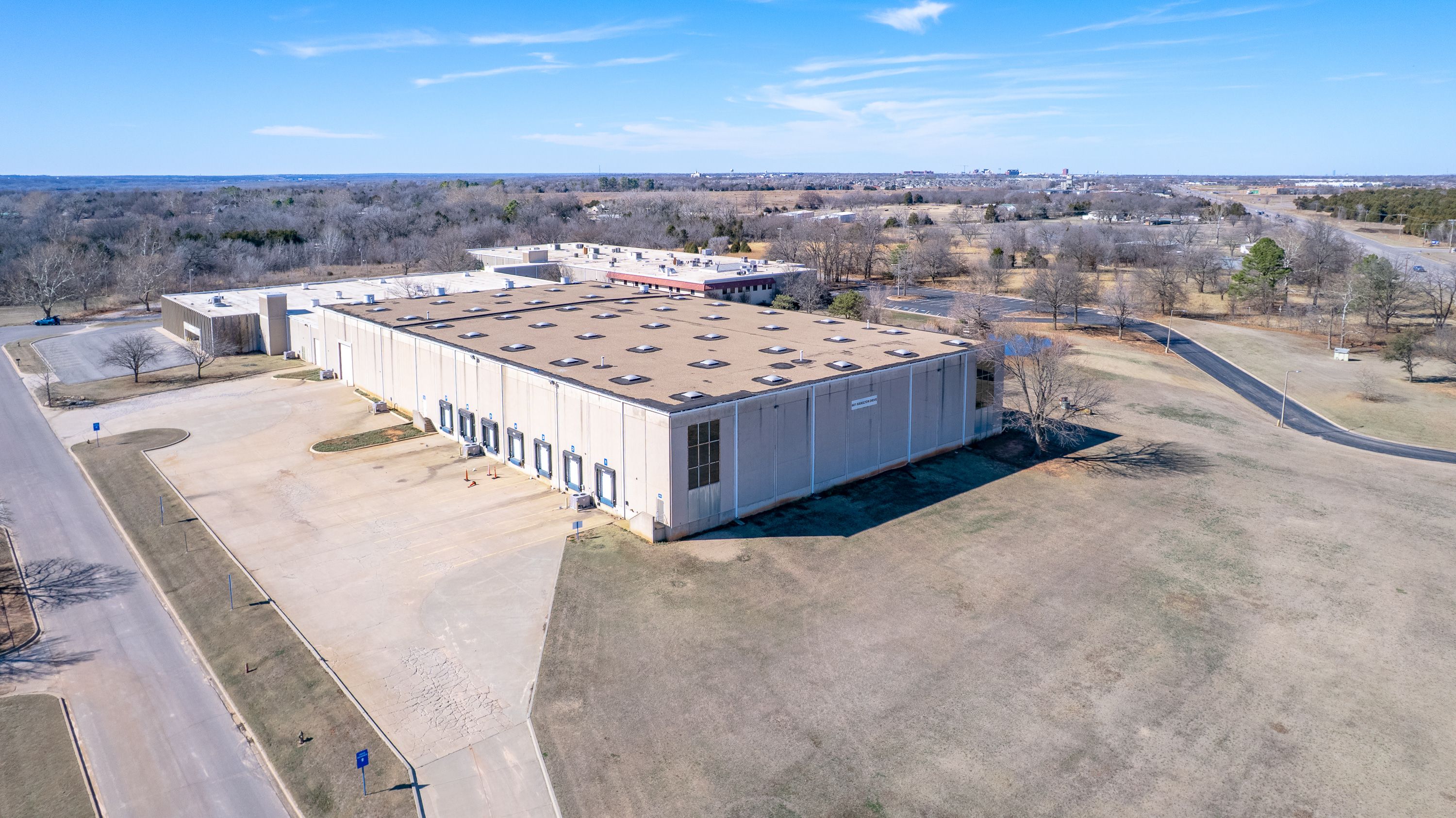 | Located at 601 N Hamilton Dr, Noble, OK 73068, this large-scale industrial facility offers exceptional access, visibility, and infrastructure along Highway 177. The property encompasses 156,623+ SF on 17+ acres and features concrete tilt-up construction (built 1982, renovated 1989), 30’ clear height, and 3-phase heavy power. With approximately 573’ of Hwy 177 frontage, two separate entrances, and a protected exit at a signalized intersection, the site is built for efficient operations and logistics. The warehouse is fully climate-controlled and equipped with multiple loading docks and overhead doors. The property is available for sale, with 50,000–56,623 SF also available for lease; approximately 50,000 SF is currently leased to two tenants, providing immediate income and upside for an owner-user or investor. For pricing, lease terms, or to schedule a tour: | ||